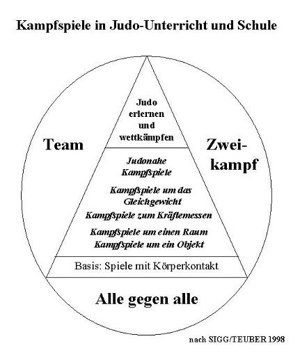 Für die Übungsgestaltung ist außerdem wichtig, das Sieg und Niederlage beim spielerischen Kämpfen relativiert werden. Dies geschieht durch häufiges Partnerwechseln und durch wechselnde Aufgabenstellungen. Literaturhinweise: HAPP, SIGRID OLIVIER, Jean-Claude SIGG, Bettina/ TEUBER-GIOIELLA, Zaira