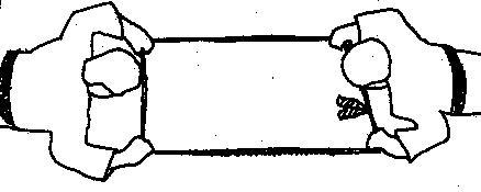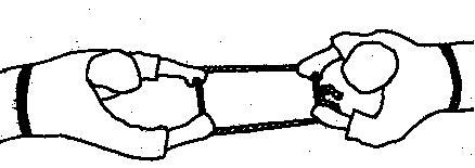 Übung 13 Stärkung der Armzugkraft Beide Partner stehen voreinander. Das Band wird jeweils mit der linken Hand gehalten. Die rechten Hände werden gegeneinander gehalten. Beide ziehen nun das Band nach hinten.