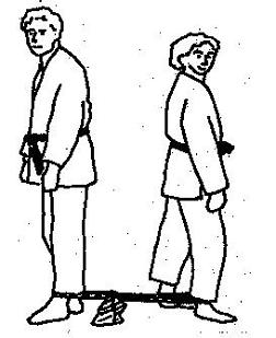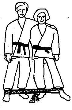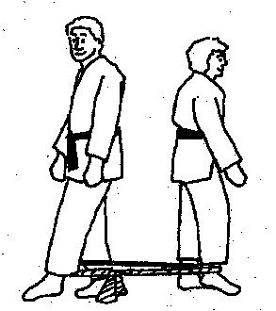 das äußere Bein gelegt, das innere Bein wird über das Band gestellt. Die äußeren Beine werden nach außen bewegt. Und: Beide Partner stehen voreinander etwa einen halben Meter auseinander. Die