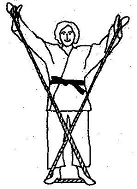 Händen über Kreuz gegriffen. Nun werden die gebeugten Arme von der Mitte nach oben außen bewegt und der ganze Körper aufrichtet.
