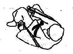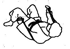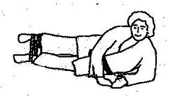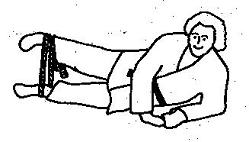 und wird mit beiden Händen gefaßt. Nun die rechten Hand zum linken Knie führen (15 bis 20 mal) und danach die linke zum rechten Knie. Dabei bleibt der Arm, der nicht zum Knie geführt wird, auf der Unterlage liegen.