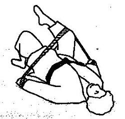 den Rücken nebeneinander. Die Beine werden angehoben und die Unterschenkel angehoben. Dann wird die Schlinge um die äußeren Knöchel gelegt. Jetzt die Beine nach außen bewegen. Dabei mit den Händen in die Matte drücken.